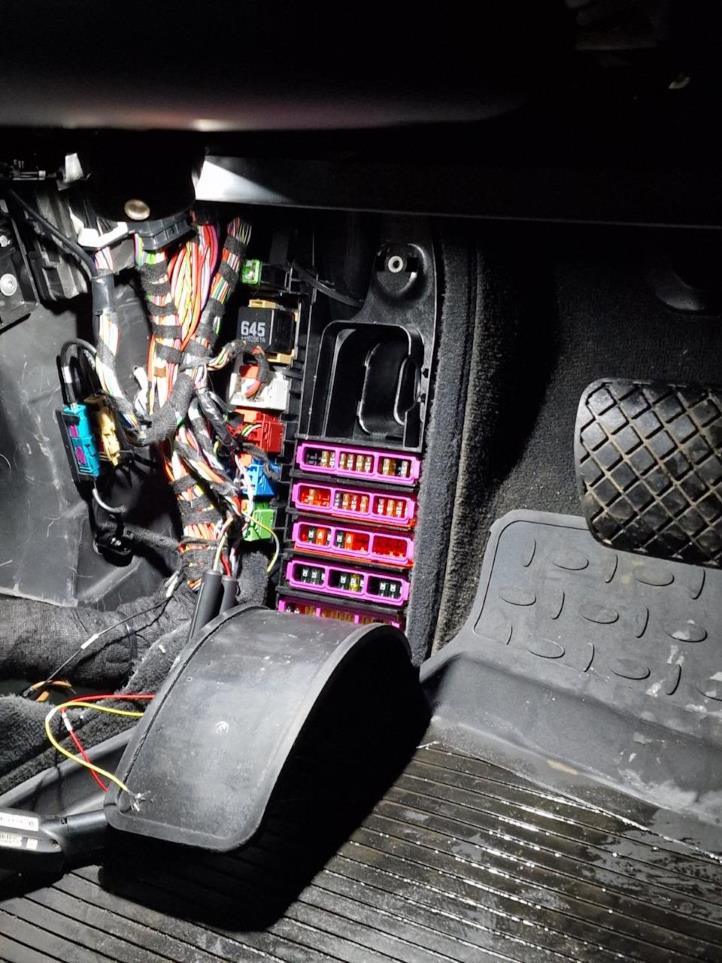 Der Sicherungskasten befindet sich auf der linken Seite, in der Nähe der Rückenlehne des Beifahrersitzes.