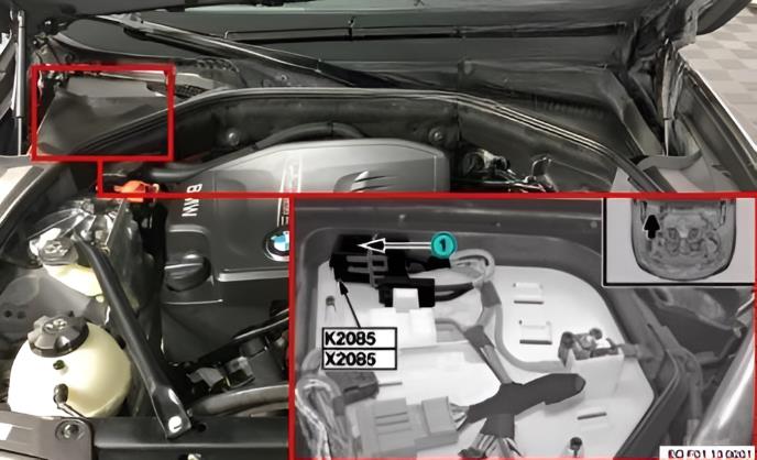 Die Schutzelemente befinden sich auf der rechten Seite. Dort befinden sich möglicherweise das Motorrelais DDE K2085 und einige Sicherungen, die für die Servolenkung und die Motorelektronik zuständig sind.