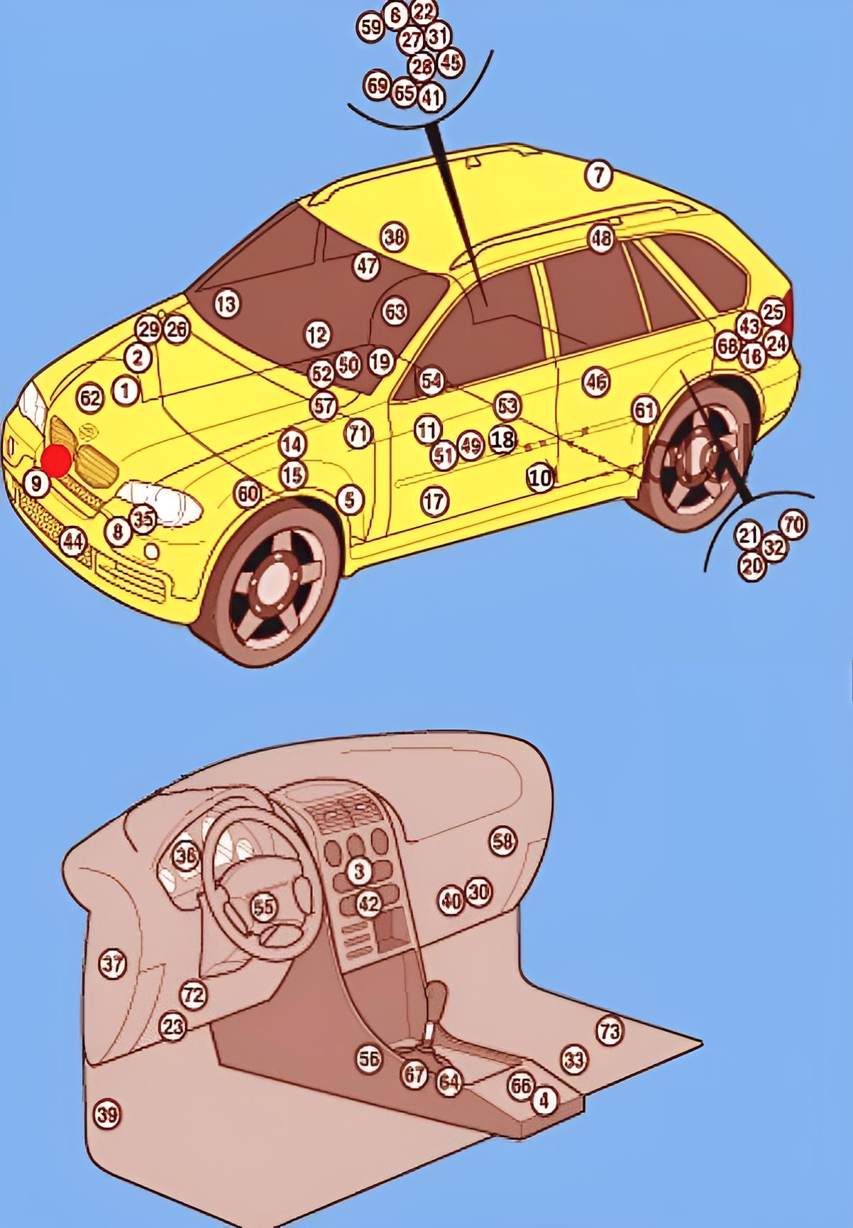 Der E70 ist die zweite Generation des deutschen Crossover X5. Das Auto wurde im August 2006 auf dem Pariser Autosalon vorgestellt. Im Jahr 2010, das Modell wurde neu gestaltet. In diesem Artikel werden wir einen detaillierten Blick auf die Belegung der Sicherungen und Relais im BMW X5 (zweite Generation; Körper Marke E70; Änderungen: 3.0d, 4.8i, xDrive 30d, xDrive 35d, xDrive 40d, xDrive 50i, xDrive M50d). Baujahre: 2006, 2007, 2008, 2009, 2010, 2011, 2012, 2013.