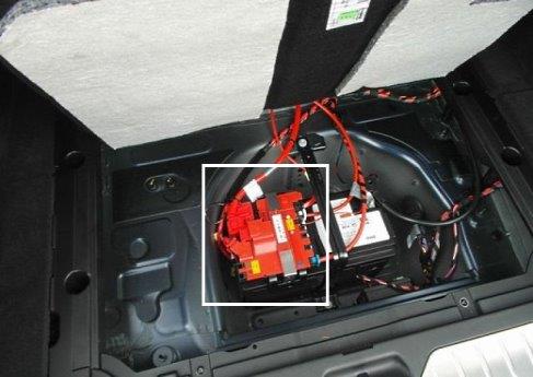 Befindet sich am Pluspol der Batterie (in der Aussparung unter dem Boden).