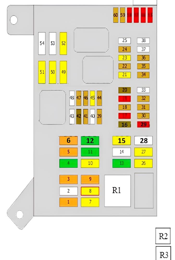 Hier befinden sich zwei Blöcke, die für den Schutz der elektrischen Schaltkreise des Fahrzeugs zuständig sind.