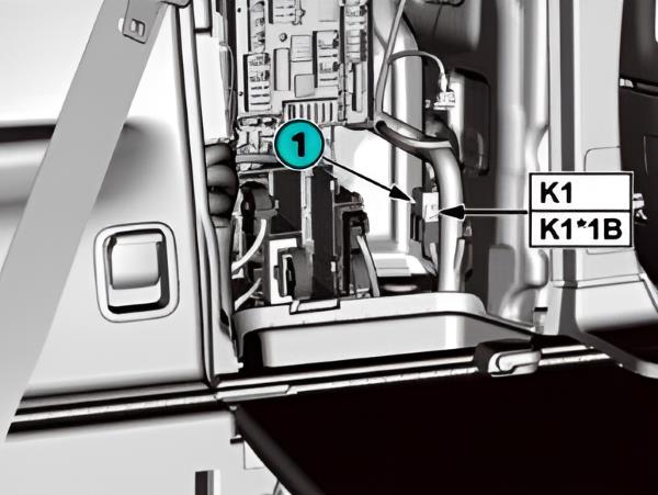 Er befindet sich in der Nähe des Beifahrerfußraums an der vorderen Säule und wird von der Verkleidung verdeckt.