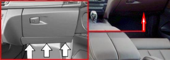 Er befindet sich unter dem Handschuhfach im Fußraum des Beifahrers. Um an ihn heranzukommen, müssen Sie die Verschlüsse des Deckels abschrauben.