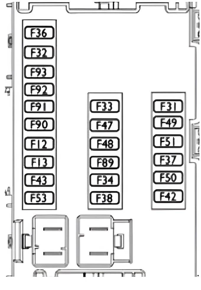 Hier befinden sich zwei Sicherungskästen, die für den Schutz der Stromkreise des Fahrzeugs zuständig sind.
