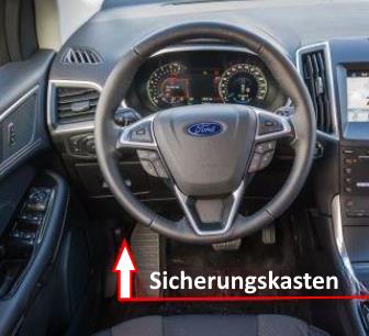 Befindet sich unten am Armaturenbrett auf der Fahrerseite.