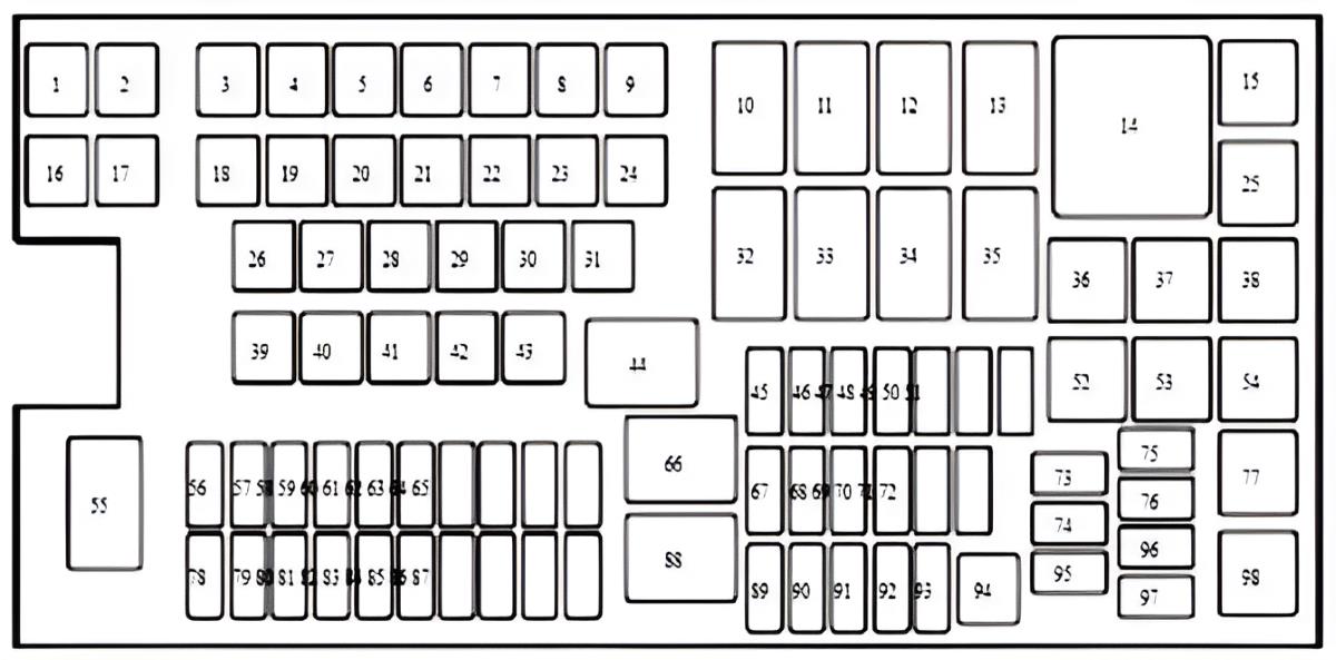 Der Sicherungs- und Relaiskasten befindet sich auf der linken Seite der Motorhaube, in der Nähe der Batterie.
