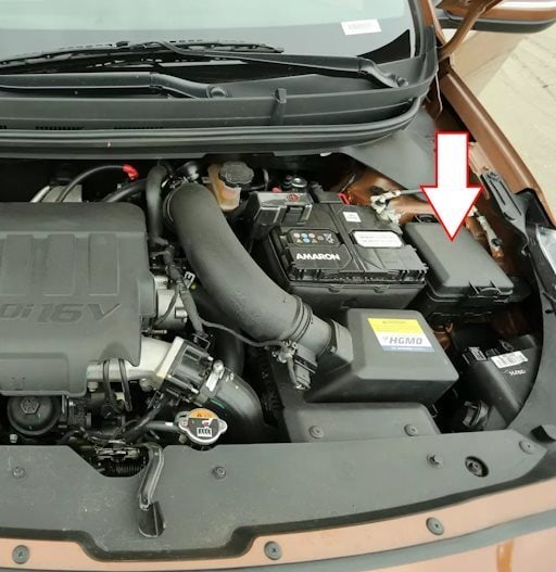 Befindet sich auf der linken Seite des Motorraums, neben der Batterie.