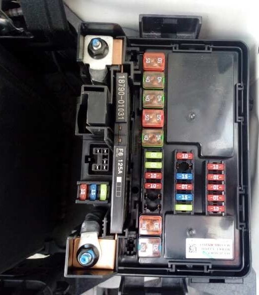 ВАТТ 1 | Verteilerkasten am Armaturenbrett (Rückleuchtenrelais, Sicherungen (S/ROOF - 20 A, FOLDING - 10 A, DR LOCK - 20 A, STOP LP - 15 A, B/A HORN - 15 A, RR FOG LP - 10 A, FRT FOG LP - 10 A, Stromanschluss (ROOM - 10 A, AUDIO - 20 A))