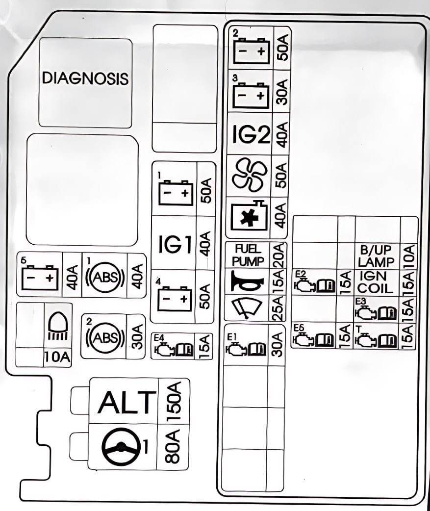 ECU A | Motorsteuerungsmodul (ECM) (bei Schaltgetriebe), Getriebesteuerungsmodul (TCM) (bei Automatikgetriebe), Motorsteuerungsrelais (Hauptrelais)
