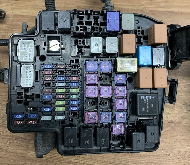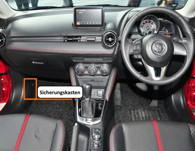 Der Sicherungskasten befindet sich in der Nähe der Tür auf der linken Seite (bei Rechts- und Linkslenkermodellen an der gleichen Stelle).