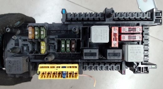5. 7,5A | SAM-Einheit mit Sicherungs- und Relaismodul im hinteren Teil des Fahrgastraums, Kühlmittelkreislaufrelais Hinterachsgetriebe (Motor 156 ab 1.7.11), Schalter Außenbeleuchtung (ab 1.12.2009)