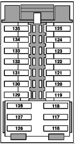 18. 7.5A | Schalter für Außenbeleuchtung (bis 2008), obere Steuerzentrale (ab 1.3.2011), Enddose für die Plusleitung des LIN-Datenbusses der Armaturenbrett-Klimaanlage (bis 28.2.2011), Elektrischer Stecker für Fahrzeuginnenraum und Kabelbaum für Schlussleuchte