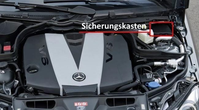 Der Sicherungskasten befindet sich auf der rechten Seite des Motorraums. Oben.