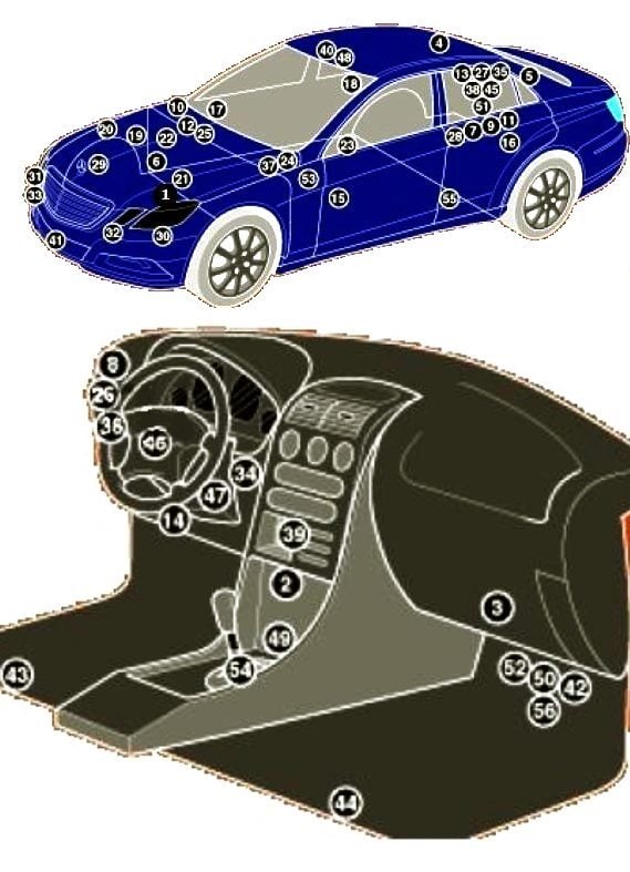45. Steuermodul der Sitzheizung - hinter der rechten hinteren Verkleidung;