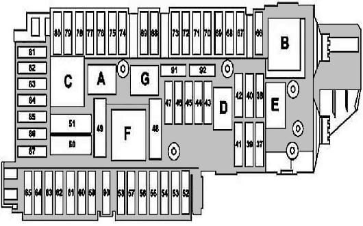 35. Steuergerät für die Fernsteuerung der Zentralverriegelung und des Motorstarts - hinter der rechten hinteren Verkleidung;