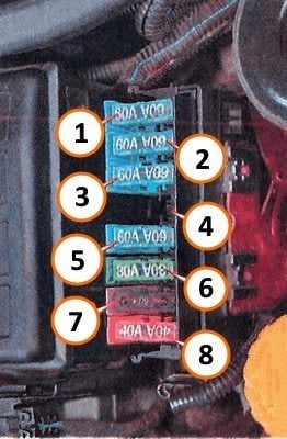 2. | Sicherungskasten/Relais - Instrumententafel, Abblendlicht, Tagfahrlicht, Diebstahlsicherung, Wegfahrsperren-Steuergerät, Motormanagement | 60A