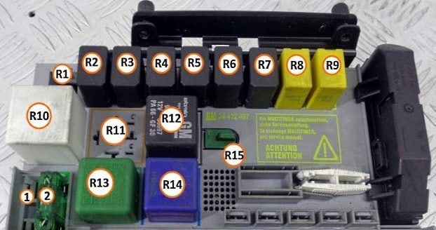 Unter der Motorhaube befinden sich 2 Blöcke: einer mit Sicherungen und einer mit Relaismodulen.