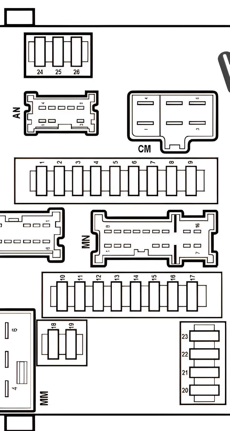 17. | Multifunktionsschalter (485), Rückfahrscheinwerferrelais (602), Kurbelwellenstellungssensor und Rückfahrscheinwerfer (1109), Verstellmotorzylinder (1150) | 10A