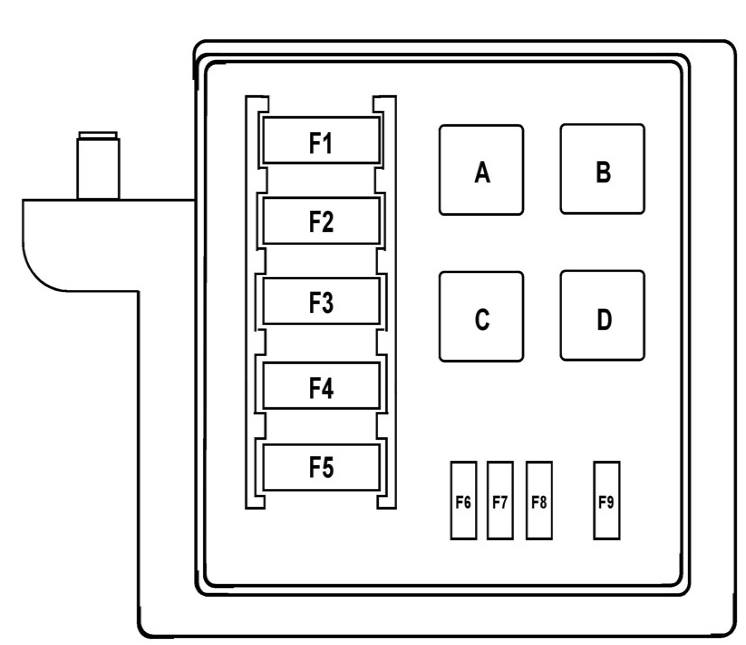 Hier befinden sich vier Sicherungsblöcke, die für den Schutz der Stromkreise des Fahrzeugs zuständig sind.