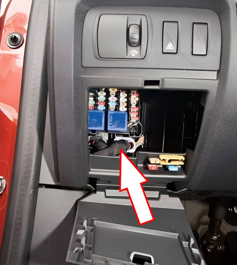 Befindet sich auf der Fahrerseite des Armaturenbretts hinter der Kunststoffabdeckung.