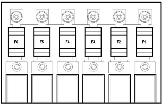Hinter der Batterie befinden sich die Batterieabschalteinheit und das Netzsicherungsfeld.