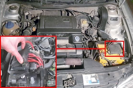 Hier finden Sie auch zwei Blöcke, die für den Schutz der Fahrzeugelektrik zuständig sind.