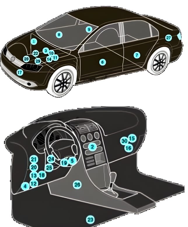 Allgemeiner Aufbau der elektronischen Komponenten im Volkswagen Jetta 6.