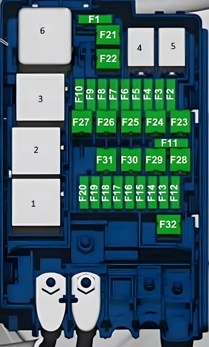 Hier gibt es zwei Einheiten, die für den Schutz der elektrischen Schaltkreise des Fahrzeugs verantwortlich sind.