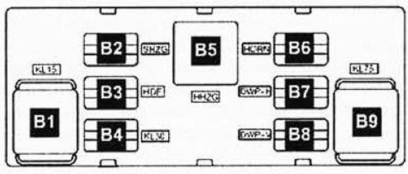 Hochstromsicherungen im Block SA- (Klemme 30).