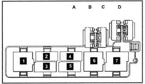 7 - Relais auf der linken Seite unter dem Armaturenbrett