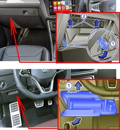 Der Tiguan ist ein kompakter Crossover-SUV von Volkswagen, der seit 2007 in 3 Generationen produziert wird. Die zweite Generation wird seit 2016 produziert. Die modernisierte Version wurde im Jahr 2020 vorgestellt. Das Auto änderte das Design der Vorder- und Rückseite der Karosserie. In diesem Artikel werden wir einen detaillierten Blick auf die Belegung der Sicherungen und Relais im VW Tiguan 2 (zweite Generation; Modellpflege; MQB A2-Plattform; Karosserieform AD1). Baujahre: 2020, 2021, 2022, 2023, 2024.