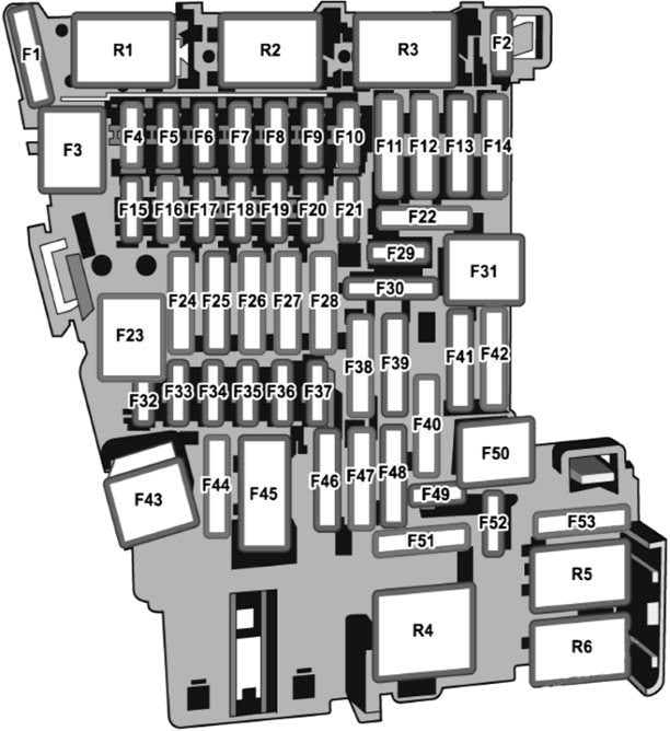 F49. | Anlasserrelais 1, Anlasserrelais 2, Fernstartrelais, Kupplungsstellungssensor | 7,5A