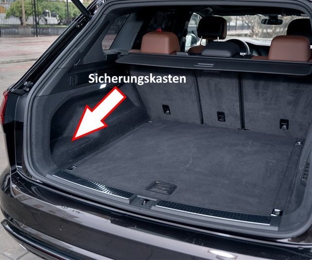 Der Sicherungskasten befindet sich hinter der Verkleidung auf der linken Seite.