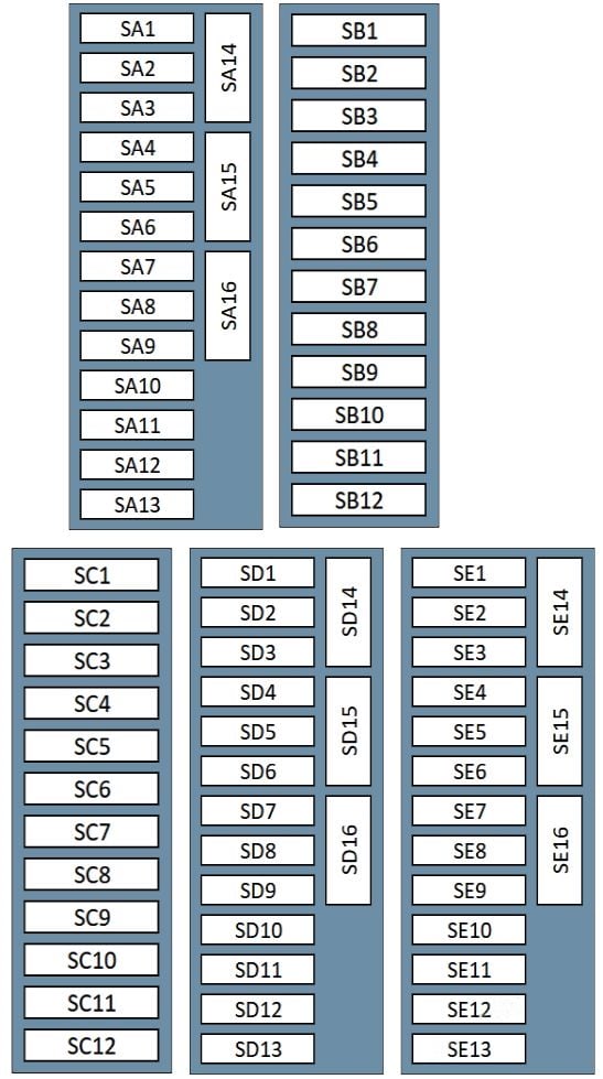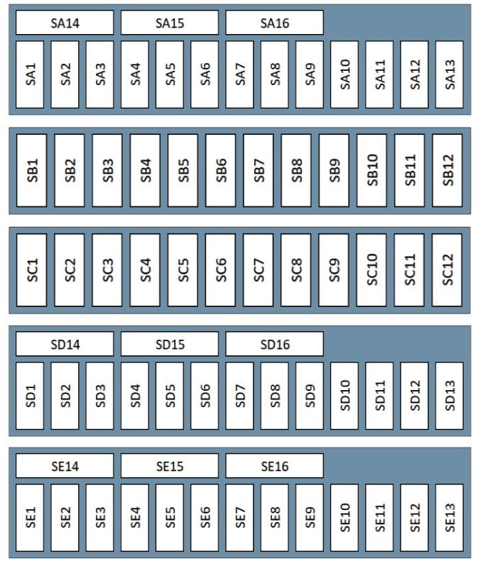 SA8. | Elektrohydraulisches Stützmagnetventil rechter Motor, Schaltventil Abgasrückführungskühler, Aktuator Einlassnocken 1 der Zylinder 2 / 3 / 4 / 5 / 6, Sekundärluftpumpenrelais, Elektrohydraulisches Stützmagnetventil linker Motor, Kraftstofftankleckagekontrollgerät, Kühlmittelumwälzpumpe, Kraftstoffdosierventil, Kraftstoffdruckregelventil, Kontinuierliche Kühlmittelumwälzpumpe, Motorkühlsystemthermostat mit Kennfeldsteuerung, Kraftstoffdosierventil, Kraftstoffdruckregelventil, Kraftstoffdruckregelventil | 7.5A / 15A