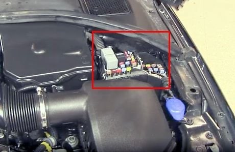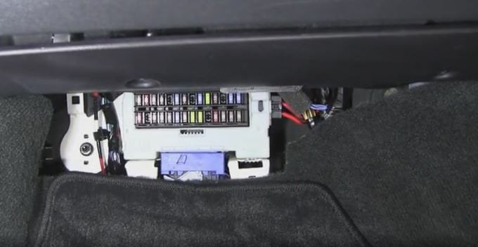 Der Verteilerkasten befindet sich auf der Beifahrerseite unter dem Handschuhfach.