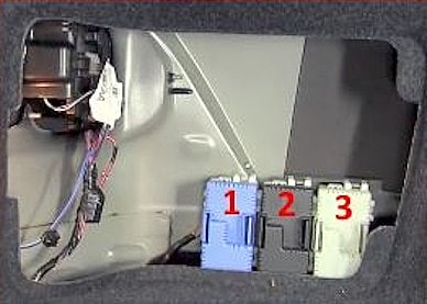 Es befindet sich auf der linken Seite hinter der Verkleidung. Er besteht aus drei miteinander verbundenen Blöcken (blau, schwarz und weiß).