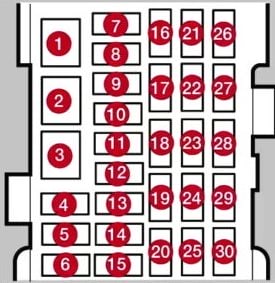 26. | 15A | Beheizter rechter hinterer Beifahrersitz (ausstattungsabhängig)